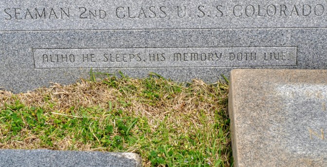 As the coffin slowly lowers, Buck’s granite marker comes into view. Sitting on top of an empty grave for three quarters of a century, it was put there by his parents. Like all grave markers it indicates the facts of Buck’s life – his birth, his death, his service on the USS Colorado, but it is the etching at the bottom that is most telling. “Altho he sleeps, his memory doth live.” No truer words were ever uttered. This reminds me of a story my grandmother often told about Buck. There was nothing he liked better than milk and bread. I imagine him now, bounding into the old farmhouse just down the road. Hot and tired from a long day working the fields, he settles down at the table, reaching for a pone of leftover cornbread. He grabs a piece and crumbles it into a bowl, covering it with milk. “I reckon this is good enough for the President,” he says to his mother as he gobbles down the remainder.